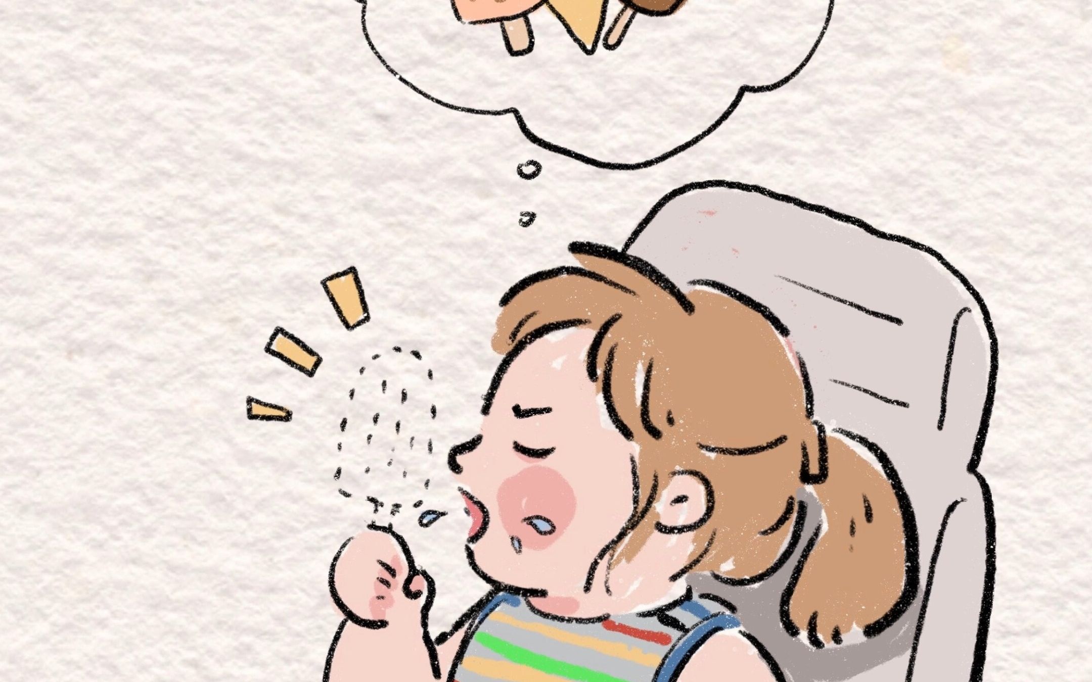 赶紧叫醒她,小孩子吃太多冰淇淋不好!