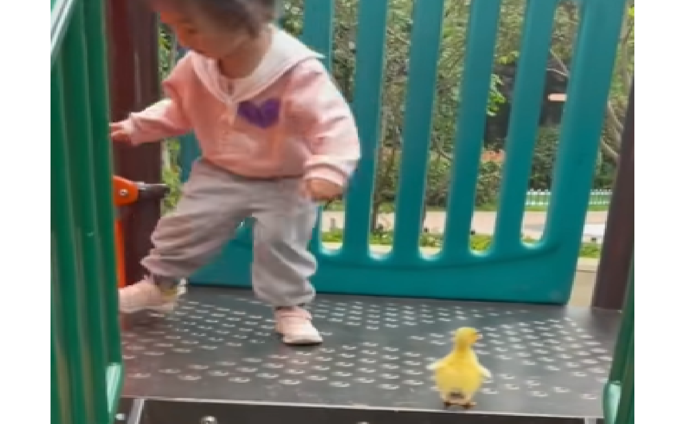 小鸭鸭也爱玩滑滑梯的吗!